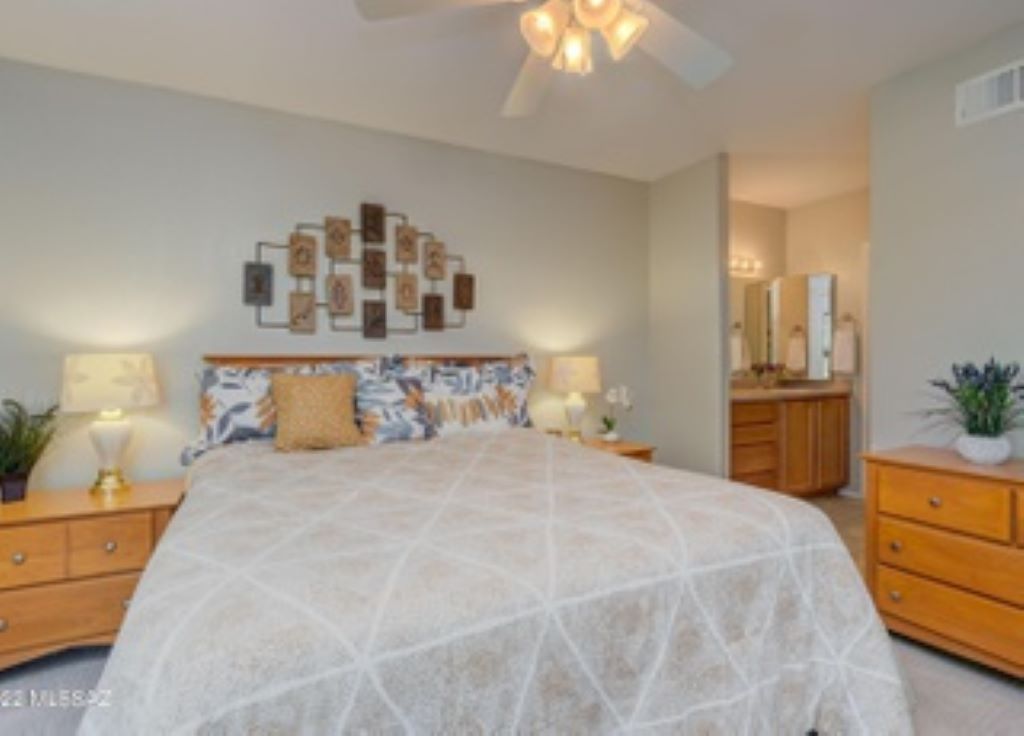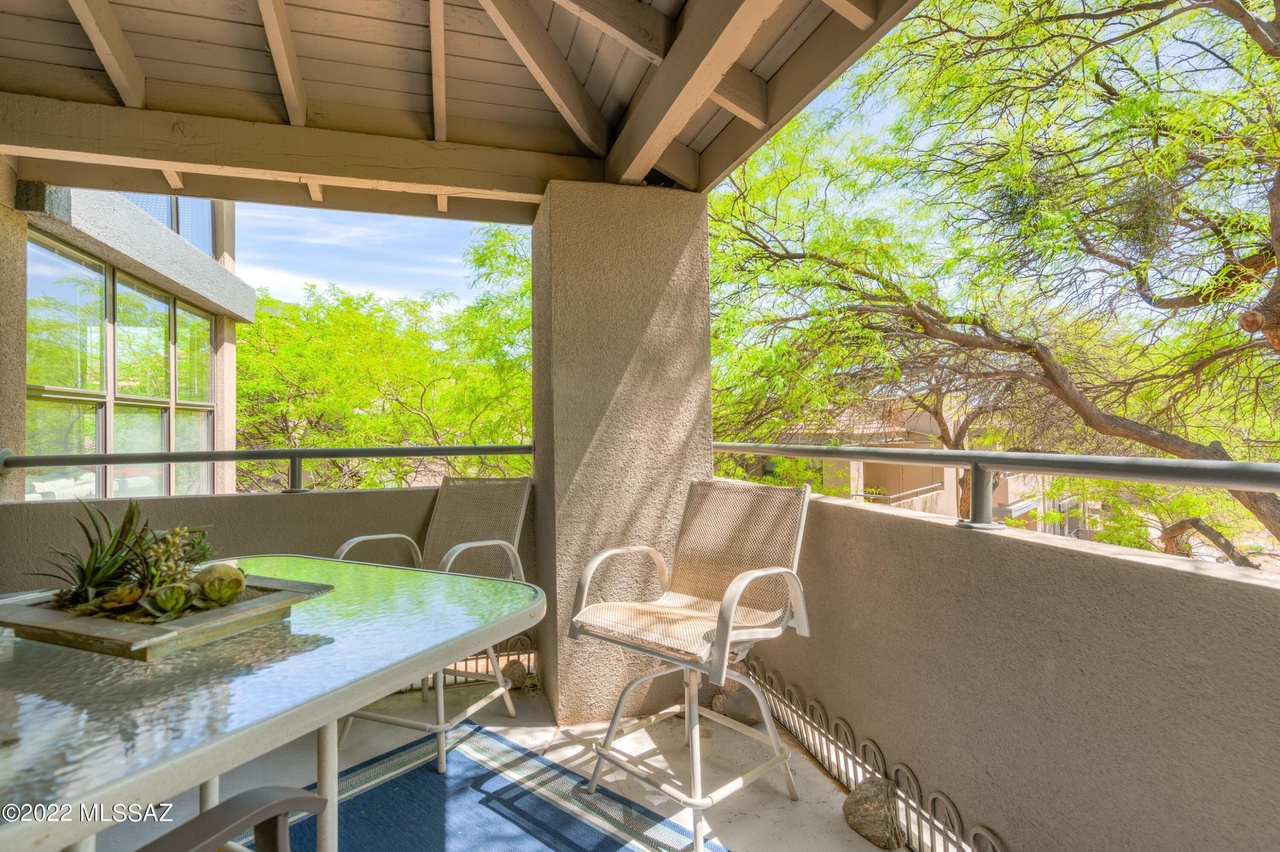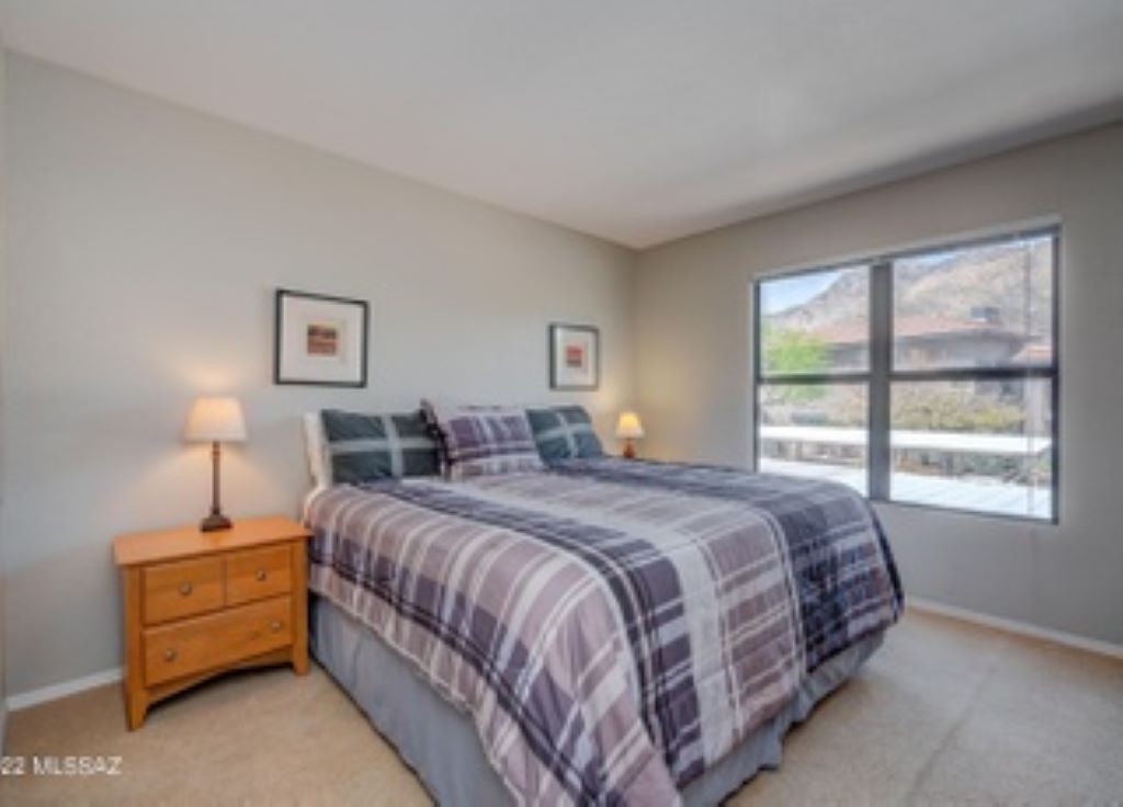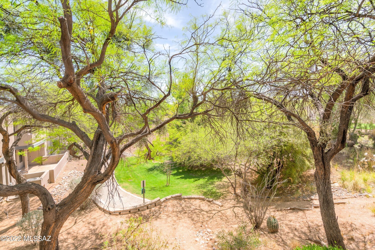 Private 2nd-floor entrance leads you into a tastefully-decorated space with soaring ceilings and lots of light. Chill out on the secluded, private porch which is perfect to enjoy the desert landscape. Two bedrooms, two full baths…master bedrooms has attached bath. Private parking. Washer-dryer. Access to 3 pools, 2 spas, and a fitness center. Hiker’s Paradise-Sabino and Ventana Canyon trails just minutes away! The world class Loews Ventana Canyon Resort is your neighbor as well…location, location, location!
